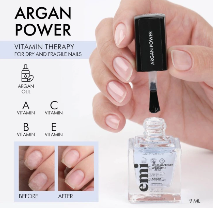 Argan Power je vyživujúca a posilňujúca vitamínová terapia pre suché a krehké nechty, ktoré postrádajú živiny. Arganový olej, vitamíny A, B, C a E vyživujú nechtovú platničku, robia ju pružnejšou a obnovuje jej zdravý vzhľad.