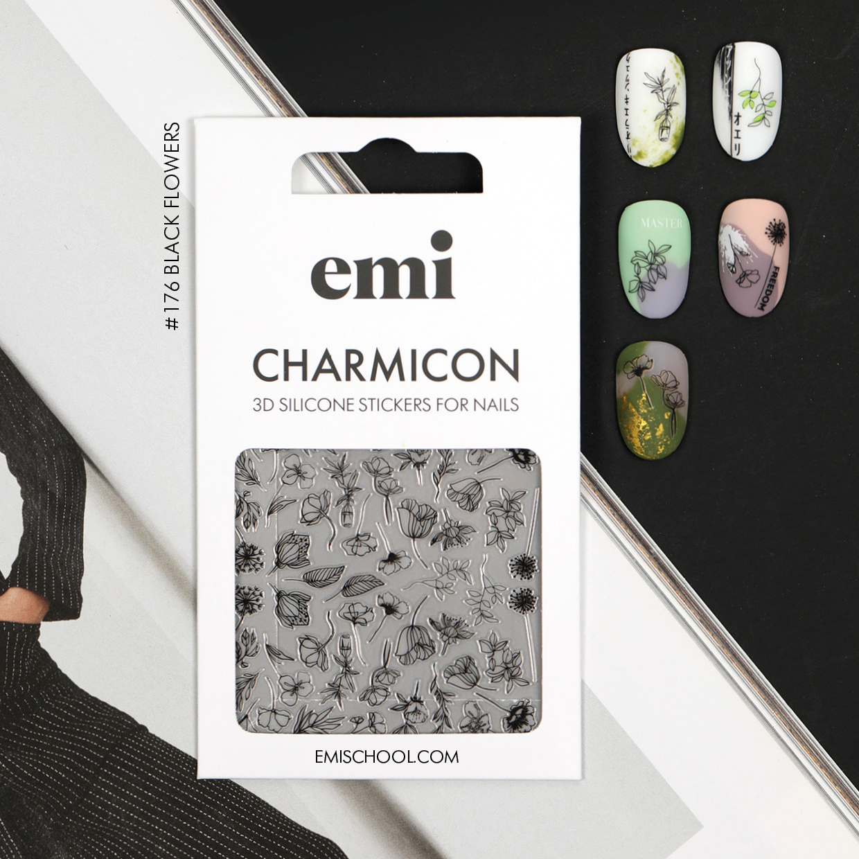 E.Mi Charmicon 3D Silicone Stickers #176 Black Flowers – samolepka