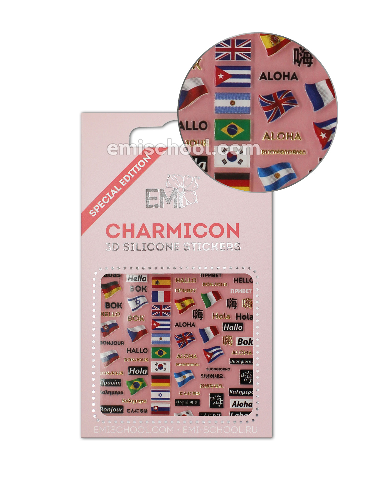 E.Mi Charmicon 3D Silicone Stickers Flags/Hello – samolepka