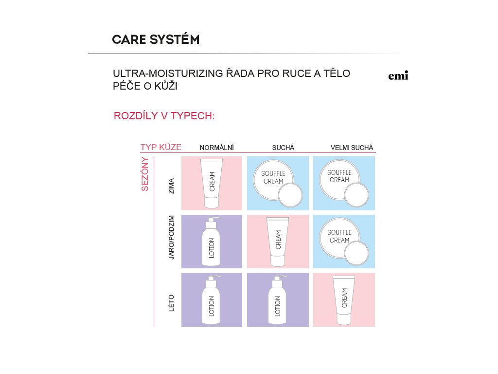 Odporúča sa na veľmi suchú pokožku a pre všetky typy pokožky v chladnom počasí.