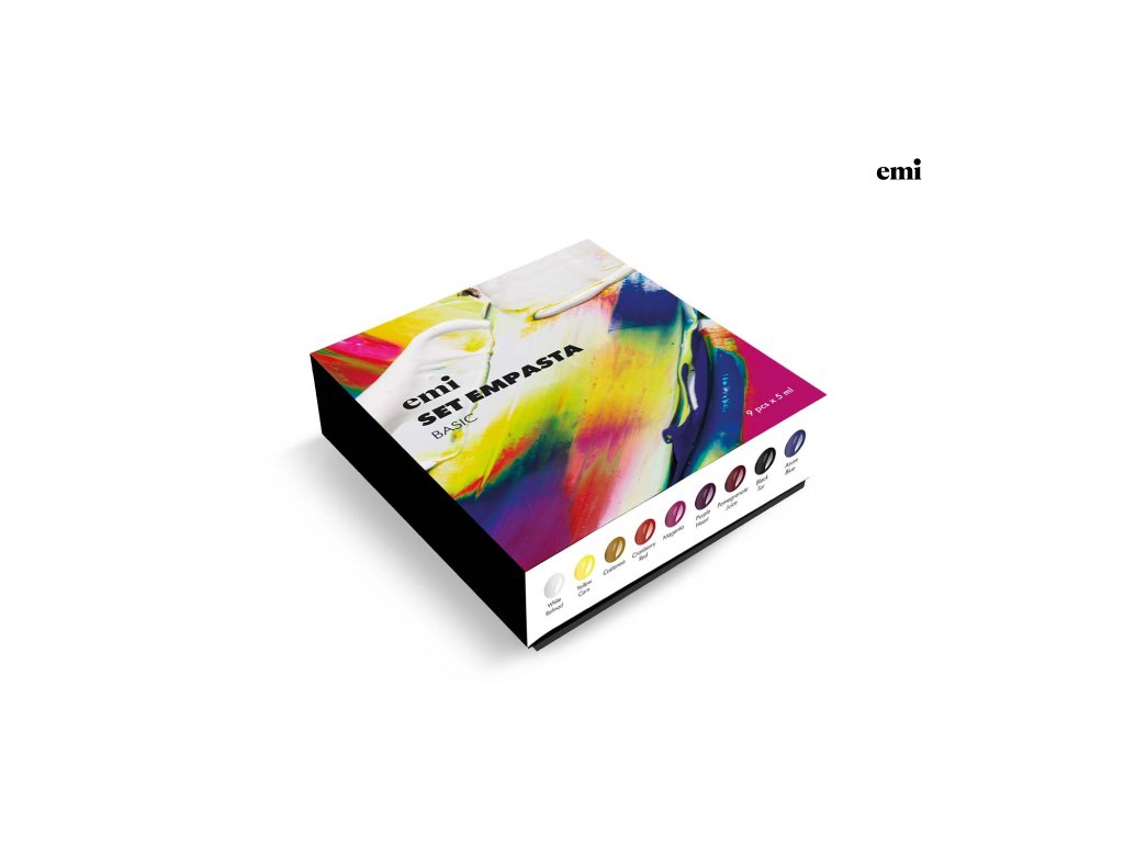 Súprava EMPASTA Basic, 9 ks x 5 ml je sada so základnými farbami – hutnými a sýto farebnými gélovými farbami EMPASTA bez výpotku v novom formáte.
