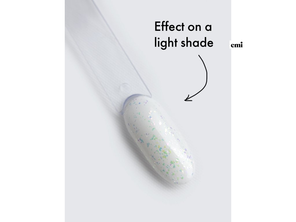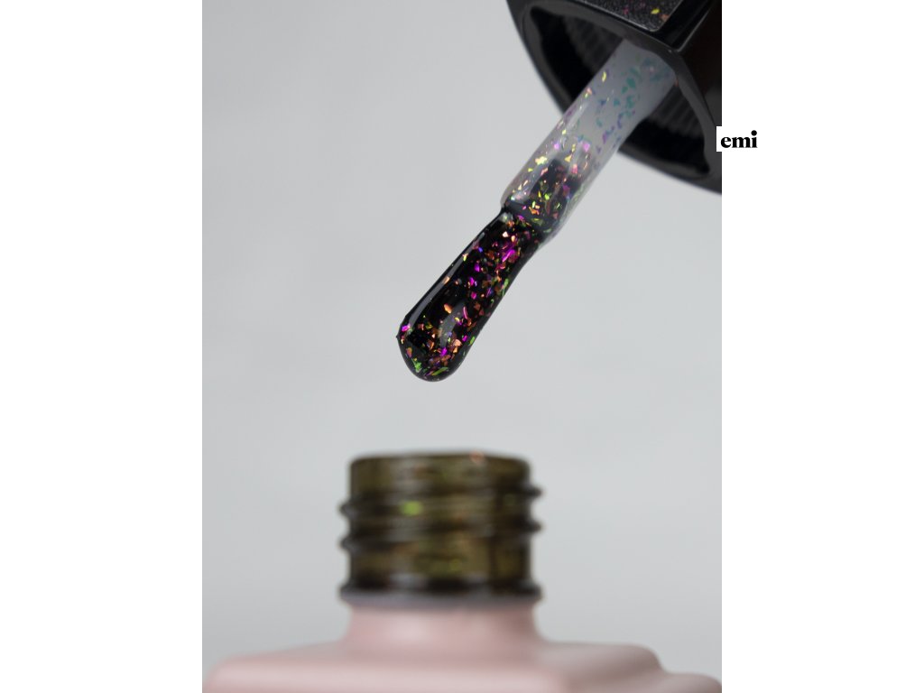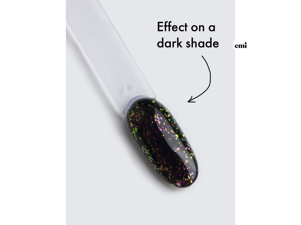 Rôzne farebné častice vytvárajú efekt disko gule, kde pod rôznymi uhlami osvetlenia môžete vidieť ružové, modré, zelené a zlaté odtiene. V závislosti na farbe podkladu sa vršok trblieta s rôznymi prechodmi, stáva sa jasnejším alebo svetlejším, čo dodáva manikúre buď ľahký hravý efekt, alebo vytvára odvážny dizajn večernej manikúry.