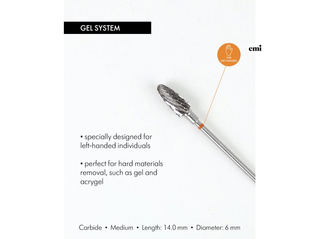 Karbidová rotačná fréza na kukuricu pre ľavákov, 6 mm, stredne hrubá – špeciálne navrhnutá pre ľavákov na odstraňovanie gélu a iných tvrdých materiálov.