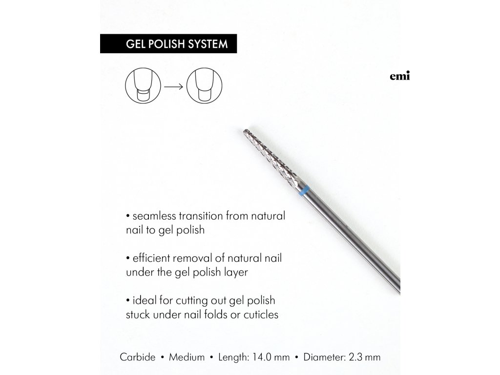 Kužeľová karbidová rotačná frézka, 2,3 mm – dokonalé riešenie pre nechtové techniky. S touto frézkou je teraz ľahšie odstrániť hranicu medzi gélovým lakom a nechtovou platničkou.